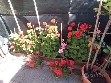 vendo vasi con gerani già grandi con fiori di diversi colori, più una calla di tre anni.