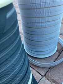 4 bobine elastico portafibbia, prodotto italiano. Vari colori e misure . Sono circa 100 mt per tipo . In una foto si vede come si adopera . Adatta per zaini , borse, calzature e pelletteria varia. Tutti insieme a 50 euro