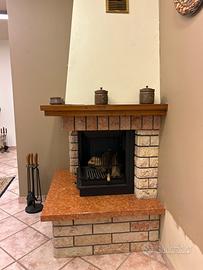 Caminetto aperto in ghisa nuovo da esposizione completo di marmo e trave in legno ( esclusa la cappa in cartongesso o muratura che va realizzata in loco).