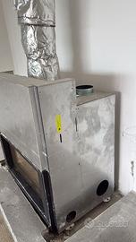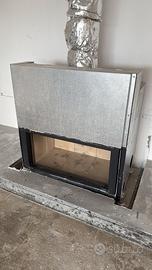 Inserto a legna moderno monofacciale ventilazione forzata, naturale senza motori elettrici ne ventole. pietre refrattarie in ottime condizioni. Altezza 112 Largo 106 Profondo 67 consegna e posizionamento nei 20km, al massimo al primo piano