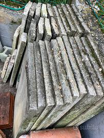 16 lastre cemento (100x49 cm.) per attraversamento giardino. 9 cimase rompi goccia cemento (100x26 cm.), per copertura muretto. Colore grigio chiaro. È possibile acquistare separatamente lastre camminamento o cimase.