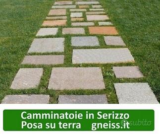 Camminatoie in SERIZZO ,per Viali, Giardini, Camminatoie, ecc. - Ideale per la posa di posa direttamente sulla terra ( fai da te ) - Spessore 3/4/5 cm - -Finitura del piano Grezzo/Taglio Disco o Granigliato - Possibilità di consegna con camion con scarico con gru - Imballo in bancali -Prezzo al mq. da definire in base alle misure richieste