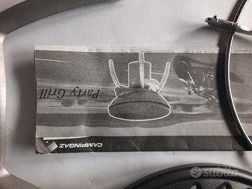 Grill a gas originale in tutte le sue parti , da campeggio , usato una volta , come nuovo , d 32 , non ha più la scatola ma è nella sua custodia originale con manico e tasca interna , piedini smontabili