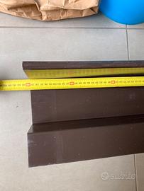 Vendo canale di gronda, grondaia, in lamiera preverniciata color testa di moro, marrone, quadrata con lunghezza di mt 4 e con le misure in foto.