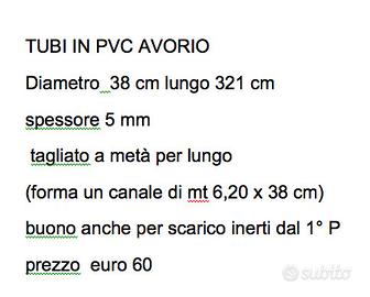Canale in pvc color avorio diametro 38 cm lungo 321 cm spessore 5 mm, tagliato a metà per lungo