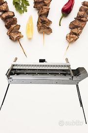 Il sistema di rotazione automatico ha il vantaggio di essere applicato su qualsiasi canalina (con lunghezza minima di 800mm) per arrosticini/spiedini senza applicare alcuna modifica per l'istallazione.