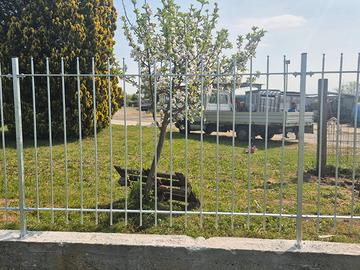 Moduli standard di cancellata in ferro con tamponamento in bacchette tonde piene con terminale a matita con pallino. Dimensioni modulo cm 200x100 Prezzo modulo grezzo euro 130.00 Prezzo modulo zincato euro 160.00 I prezzi sono posa esclusa Posa da quantificare a parte Possibilità di moduli a misura Si realizzano altresì cancelli carrai e pedonali a misura ed in stile Per ulteriori informazioni o richieste contattare il cell. 3711247373