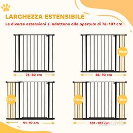 Cancellino per Cani di Sicurezza Estensibile da 76-82/86-97/101-107 cm Montaggio a Pressione, Metallo e Plastica, Nero Nuovo ancora da sballare