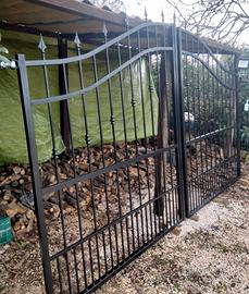 Vendo cancello in ferro apertura di 350 cm e altezza di 229 cm, in perfetto stato e molto robusto ed elegante.