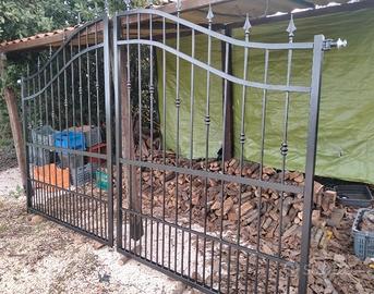 Vendo cancello in ferro largo 350 cm e alto 229 cm, in ottimo stato, cardini compresi. Possibile trasporto.