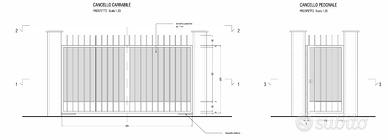 Cancello metallico carrabile a doppia anta e cancelletto pedonale ad anta unica. Mai installato. Misure come da disegno allegato. Disponibile per visione nel fine settimana nel comune di Minturno.