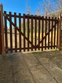 Vendo cancello colonne in ferro e doghe in alluminio, larghezza 4,30 m totale pedonale 0.90 m passaggio auto 3 .00m altezza da terra 1,85 m colonne2.00 m Sergio 335 58 59 046