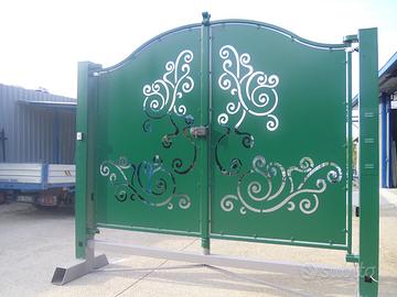 cancello largo mt.3.00 completo di pilastri e sistema automatico di apertura. zincato e verniciato. cancello nuovo, vendo per rinnovo mostra espositiva.