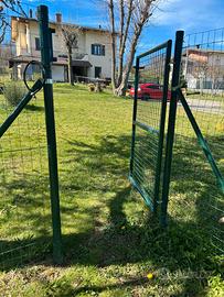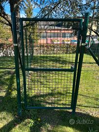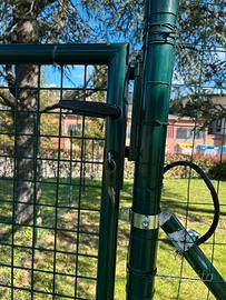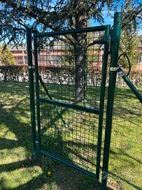 Cancello da giardino / per recinzione, colore verde, in acciaio, con maniglia e serratura. Robusto. Gia’ smontato ma visionabile. In ottimo stato. Misure: cm 106x150 h (misura solo anta cm 87x150 h), pali h cm 200. Ritiro in loco a Serramazzoni o spedizione a carico dell’acquirente. Prezzo leggermente trattabile