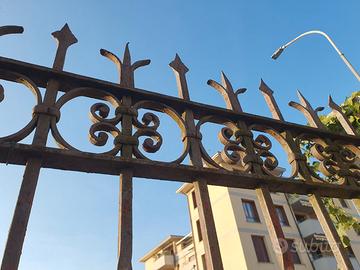 Come da titolo vendo cancello misure luce 3 metri per 250 cm circa (due ante da 150 cm), e cancelletto singola anta luce 1 metro, altezza 250 cm circa, in ferro battuto, decori ed elementi caratteristici tipici, risalente ad inzio '900, vendo tutto ad euro 2.500. Ottimo stato, peso importante. Ritiro in loco. Mandare messaggio o chiedere informazioni se interessati.