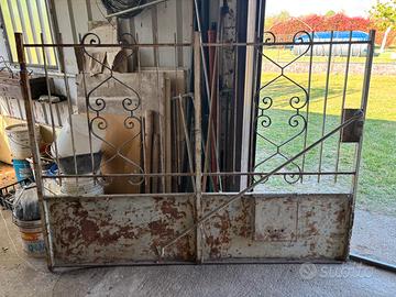 Cancello e cancelletto in ferro, artigianale, molto pesante, da riverniciare, come da foto. Misure 1,98x1,45 (il grande) 1,05x1,45 (il piccolo)