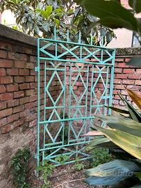 Vecchio cancello in ferro molto decorativo utlizzabile in giardino come griglia appendi vasi o per far arrampicare piante . Misure : largh 96 h 163