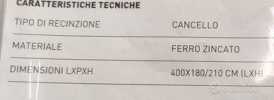 Bellissimo cancello carrabile in ferro zincato nero. Nuovo mai montato, qualche graffio causa trasporto €.1200 trattabile