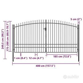 Cancello Doppio con Punte a Lancia 400x249,5 cm marca vidaxl (potete controllare sul sito il prezzo) nuovo ancora imballato vendo per misure sbagliate. Materiale acciaio verniciato nero in polvere. Da assemblare.