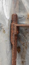 ... veramente originale dell' 800... rimasto sepolto nel pavimento del magazzino, bello così da vedere ad amanti ed apprezzanti del ferro....vanno rifatti i "perno cerniera inferiori"....le aste tonde sono da 2 cm....ci sono i chiodi-rivetti per l'assemblaggio ( vedi foto)