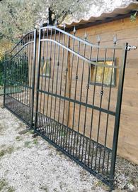 Vendo cancello in ferro di 4 metri di apertura e alto 230 cm al centro, molto robusto ed elegante, in ottimo stato. Cardini regolabili già montati.