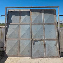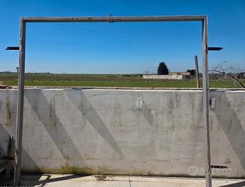 Vendesi cancello in ferro a due ante completo di telaio perimetrale, ideale per ingressi di ville, rimesse, terreni o garage. La struttura è solida e include già i cardini saldati al telaio e il chiavistello centrale per la chiusura. Dimensioni: • Larghezza interna: 246 cm • Larghezza esterna telaio: 254 cm • Altezza (Interna): 224 cm • Altezza (Esterna massima): 228 cm Stato dell'oggetto: • Materiale: Ferro zincato/verniciato. • Condizioni: Usato in buone condizioni strutturali. Presenta alcuni segni di ruggine superficiale dovuti all'esposizione, facilmente ripristinabili con una rinfrescata di vernice protettiva. • Accessori inclusi: Telaio portante a "U", ante, cardini e serratura a scorrimento (chiavistello). Prezzo: € 200