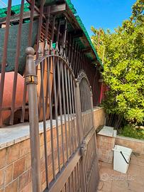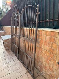 Vendo cancello in ferro battuto a due ante, utilizzato fino a poco tempo fa in abitazione privata. Ideale per ingressi carrabili o pedonali. •Larghezza totale: 2,20 m (1,10 m per anta) •Altezza parte centrale: 2,10 m Completo di serratura funzionante Design classico con elementi decorativi Buone condizioni generali, presenta normali segni di usura dovuti al tempo Pronto per essere montato Eventualmente da riverniciare per un risultato estetico ottimale. Ritiro a mano.
