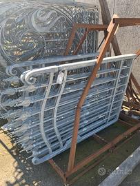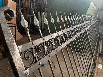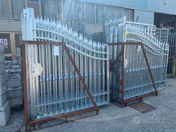 Cancello in ferro battuto realizzato con paletti in ferro pieno, lance e ribattini, il tutto zincato a caldo, disponibili con base 3,5m e con base 4m, altezza massima sulla punta 2m (vedi disegni allegati per maggiori dettagli). Disponibili e in pronta consegna fino ad esaurimento scorte di magazzino. Disponibilità di aggiungere anche il cancello pedonale e la recinzione. Il prezzo della spedizione indicato potrà subire delle piccole variazioni in base alla destinazione finale. (il prezzo indicato si riverisce a l cancello con base 3,5m)