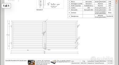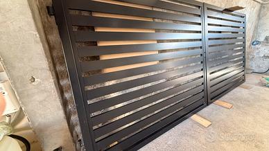 Cancello acquistato e mai usato. Telaio in ferro verniciato a polvere e doghe in alluminio. Dimensioni 4 metri x 1,7 m di altezza