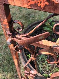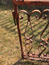 Cancelletto in ferro lavorazione artigianale, con riccioli, come da foto, solo da riverniciare. Dimensioni: Altezza al centro 120 cm Larghezza 70 cm