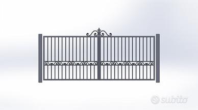 Esempio di Cancello in ferro da realizzare, zincato a caldo con struttura in scatolare 40x40x2 traversi in 40x20x2 aste divisorie in 20x20x2 disegni e ricci in piatto. pilastri in ferro scatolare 120x120x3