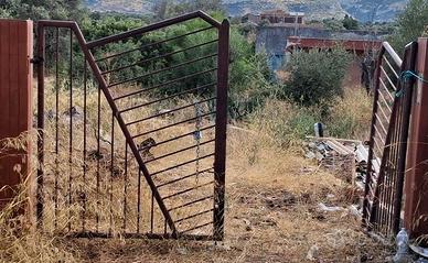 Vendo cancello in ferro a due ante, molto robusto e resistente, ideale per ingressi di terreni agricoli, case in campagna o proprietà private. Il cancello presenta normali segni di usura e ruggine superficiale, ma è perfettamente recuperabile con una semplice carteggiatura e verniciatura. Misure : Larghezza totale: circa 3 m Altezza: circa 1,8 m