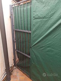 Vendo cancello in ferro con seguenti misure: Altezza: 2 MT. Larghezza:189cm Da posizionare in aperture da 198 cm. Il telo verde si può togliere No spedizione