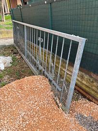 Cancello in ferro zincato in ottime condizioni, scorrevole su binario. Lunghezza mt 4,68. Altezza mt 1,20