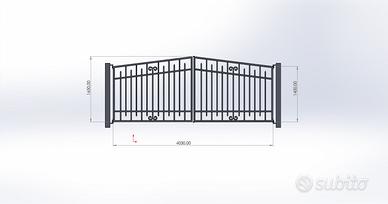 COMPOSTO DA SCATOLARE 40X40X2 CON PIATTI 25X6 CON FISSAGGIO A RIBATTINI CHIUSURA A CHIAVISTELLO PIANTONI IN IPE 120 O SCATOLARE 120X120X3: