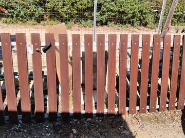 Cancello a due ante. Totale cancello MT 4,80. Si tratta di un'anta da mt200 e una di MT 2,80. Cancello molto robusto e costruito con legno adatto per stare all'aperto e resistente all'acqua.