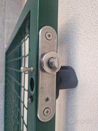 Vendo , come da foto, cancelletto in acciaio zincato completo di montanti e serratura. (solo da un lato, con chiave) 115hx100(da montante a montante)