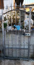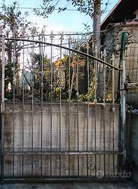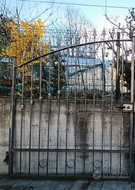 Vendo cancello usato formato da 2 ante e un portoncino pedonale con struttura molto robusta. Sono rifiniti con punte a forma di lance e borchie su tutte le barre di riempimento. Le misure sono le seguenti: Anta del cancello, larghezza 175 cm, altezza laterale esterna 175 cm e altezza centrale 223 cm. per una larghezza totale di 350 cm. Il cancellino pedonale invece è alto 162 cm per una larghezza di 81 cm. Il montante sx di quest'ultimo è piegato quindi va sistemato. Nelle ante del cancello 4 barre vanno allineate alle altre, sono leggermente piegate, ma niente di che. Vendo il tutto a 1500€ trattabili. Visto il peso e l'ingombro non spedisco.