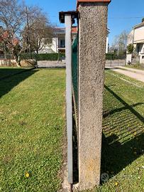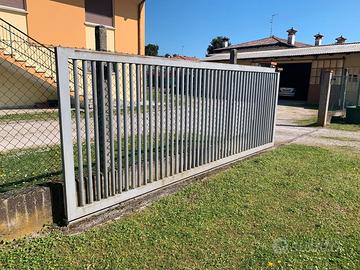 Vendo cancello scorrevole usato in tubolare rettangolare da cm 5 ed aste in tubo elittico. Lunghezza mt 4.35 altezza mt 1.55. Non spedisco.