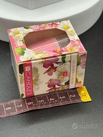Candela profumata con fragranza Gelsomino & Fresia, presentata in una confezione decorata con fiori.