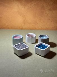 Candele glitterate con vasetto in gesso lucidato prodotte artigianalmente altezza varia da cm 3 a cm 5 confezioni sacchettini trasparenti costo 5 candele 13 euro caduna 3 euro