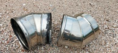 tubi in acciaio inox 5/10 D250 2 curve 45° 1 fascetta 1 spezzone.di tubo l 80cm tutto come da foto.