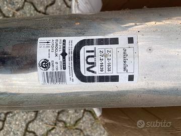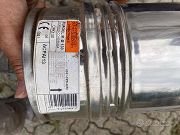 Tubi in acciaio per canna fumaria diametro 130 tutto nuovo acquistata ma mai montata. Terminale con portina per ispezione e pulizia, due tubi da 1 m, un tubo da 50 cm, un tubo a T, un tubo da 25 cm, 6 anelli di giunzione con guarnizioni, piastre per fissaggio.