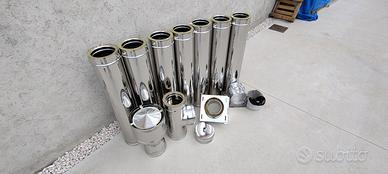 Tubazione ed accessori per realizzazione canna fumaria doppia parete coibentata per evacuazione fumi stufa a legna.