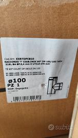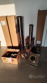 Canna fumaria coibentata acciaio inox DN 100/150 composta da: - n.3 tubi lunghezza 1m - n.1 raccordo T 90° - n.1 aggancio a parete - n.1 tappo cieco per scarico condensa - n. 1 terminale superiore con griglia antipioggia - n.2 collari per fissaggio a muro - n.7 collari stringitubo di giunzione Ritiro a mano.
