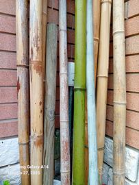 Fascio da 5 pezzi, lunghezza circa 2,20m, diametro da 2 a 4 cm; utilizzabili per sostegno piante come pomodori, melanzane, peperoni, ecc., oppure da sostegno reti per piante rampicante da giardino o ortaggi (fagioli, cetrioli, piselli, ecc.); ideali anche per utilizzo estetico di abbellimento case o giardini da porre in un vaso con pietre o terra, 5 pezzi 5 Euro. Disponibili di diametro da 3 a 6 cm, taglio lunghezza a richiesta 1 m da 2 a 3 Euro, (vedi ultima foto) . Dispongo di 2 vasi da 40cm di oltre 2m 20 Euro e da 30cm di oltre 1,5m 10 Euro con piante vegetative. Non spedisco solo consegna mano a mano.