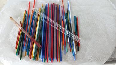 Vendo, tutte insieme, serie di canne di vetro di vari colori e varie misure per vetrofusione / perle di vetro. Peso: 4,5 kg.