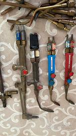 Cannelli e impugnature di varie dimensioni e geometrie con supporti vari . Saldatura a gas , regalo occhialini e manometri da rigenerare. Vendo per inutilizzo.