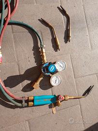 Cannello da saldobrasatura o fusione per utilizzo orafo/ odontotecnico, utilizza gas propano + ossigeno,o acetilene + ossigeno,con manometri e riduttori di pressione.Tubi e OR da rivedere / sostituire.Materiale tutto funzionante, condizione di vendita:visto e piaciuto,Bombole e valvole di sicurezza NON disponibili.Prezzo non trattabile.