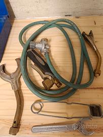 Vendo cannello per saldature tubi rame usato causa inutilizzo per cessata attività. Impugnatura seminuova e girevole, riduttore, 2 cannelli per dm 22 e dm 40 chiave per bombola gas e accendi fiamma. Il tubo di gomma sarà da sostituire per scadenza anno.